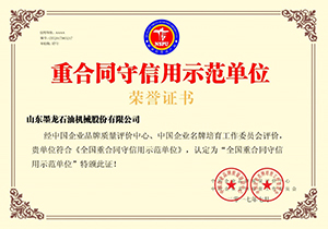 此次榮獲“重合同守信用示範(fàn)單位”榮譽(yù)稱號是公司以誠信求生存的重大體現(xiàn),為進(jìn)壹步增強(qiáng)公司的市場競爭力註入了壹針強(qiáng)心劑。堅定了山東墨龍繼續(xù)在石油機(jī)械領(lǐng)域做大做強(qiáng)的信心,通過進(jìn)壹步的企業(yè)改革升級、砥礪前行,打牢石油機(jī)械持續(xù)穩(wěn)定發(fā)展的根基,為石油機(jī)械行業(yè)的誠信、健康發(fā)展貢獻(xiàn)綿薄之力。