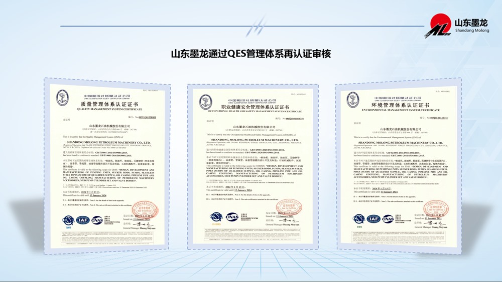 近日,中國船級社質(zhì)量認證公司(以下簡稱“中國船級社”)完成對山東墨龍及相關(guān)下屬子公司的QES管理體系(質(zhì)量管理體系、環(huán)境管理體系和職業(yè)健康安全管理體系)再認證審核工作。中國船級社認證工作組通過現(xiàn)場審核,確認山東墨龍再次獲得認證注冊資格,并頒發(fā)認證證書,證書有效期為三年。