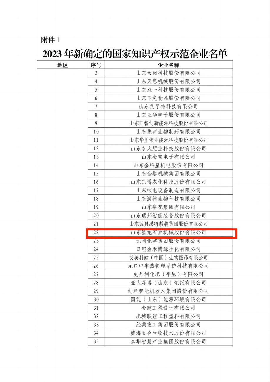 2023年11月29日,國(guó)家知識(shí)產(chǎn)權(quán)局公布了2023年新一批及通過復(fù)核的國(guó)家知識(shí)產(chǎn)權(quán)示范企業(yè)和優(yōu)勢(shì)企業(yè)名單,山東墨龍石油機(jī)械股份有限公司(以下簡(jiǎn)稱“山東墨龍”)成功入選,成為壽光市首家國(guó)家知識(shí)產(chǎn)權(quán)示范企業(yè)。